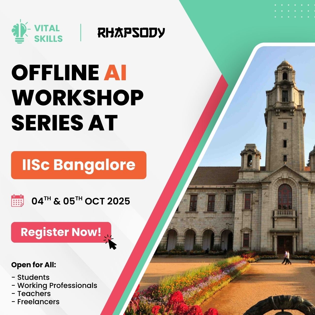 In today’s fast-evolving tech world, staying ahead requires practical knowledge and hands-on training. To help students, freshers, and professionals upgrade their skills, Vital Skills, in association with Rhapsody 3.0 IISc Bangalore, is hosting 2-Day Exclusive Technical Workshops on the IISc Bangalore campus.